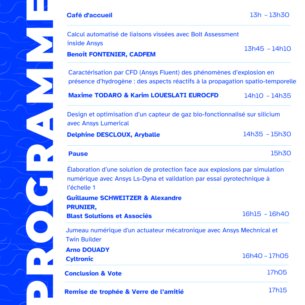 Ouvert aux professionnels, cet évènement propose des présentations techniques autour de simulations avec le logiciel Ansys, données par des ingénieur·es issu·es du monde industriel. Quels étaient les enjeux au début du projet, quelle a été la méthode employée afin de résoudre les problématiques, quelles étapes clés dans le développement ont été franchies pour aboutir à l’innovation ?