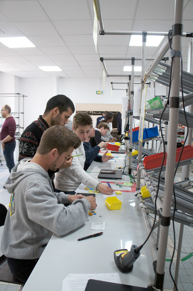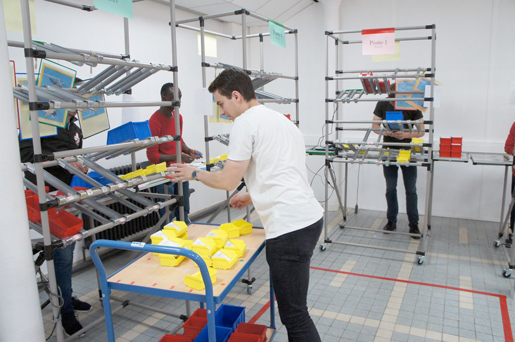 Ce lundi 1er avril nous avons eu le plaisir d’accueillir 27 étudiants d’ISAE-SUPAERO, d’ISAE-ENSMA et de l’ESTACA. Ils ont notamment pu expérimenter hier et aujourd’hui le module de Gestion industrielle qu’ils sont nombreux à avoir choisi. C’est un enseignement singulier et très pratique qui reproduit à petite échelle une chaine de production. Cette mise en situation dans le Lean Lab de Supméca permet de mettre en évidence les problématiques à prendre en compte pour l’organisation et l’optimisation d’une chaine de production.