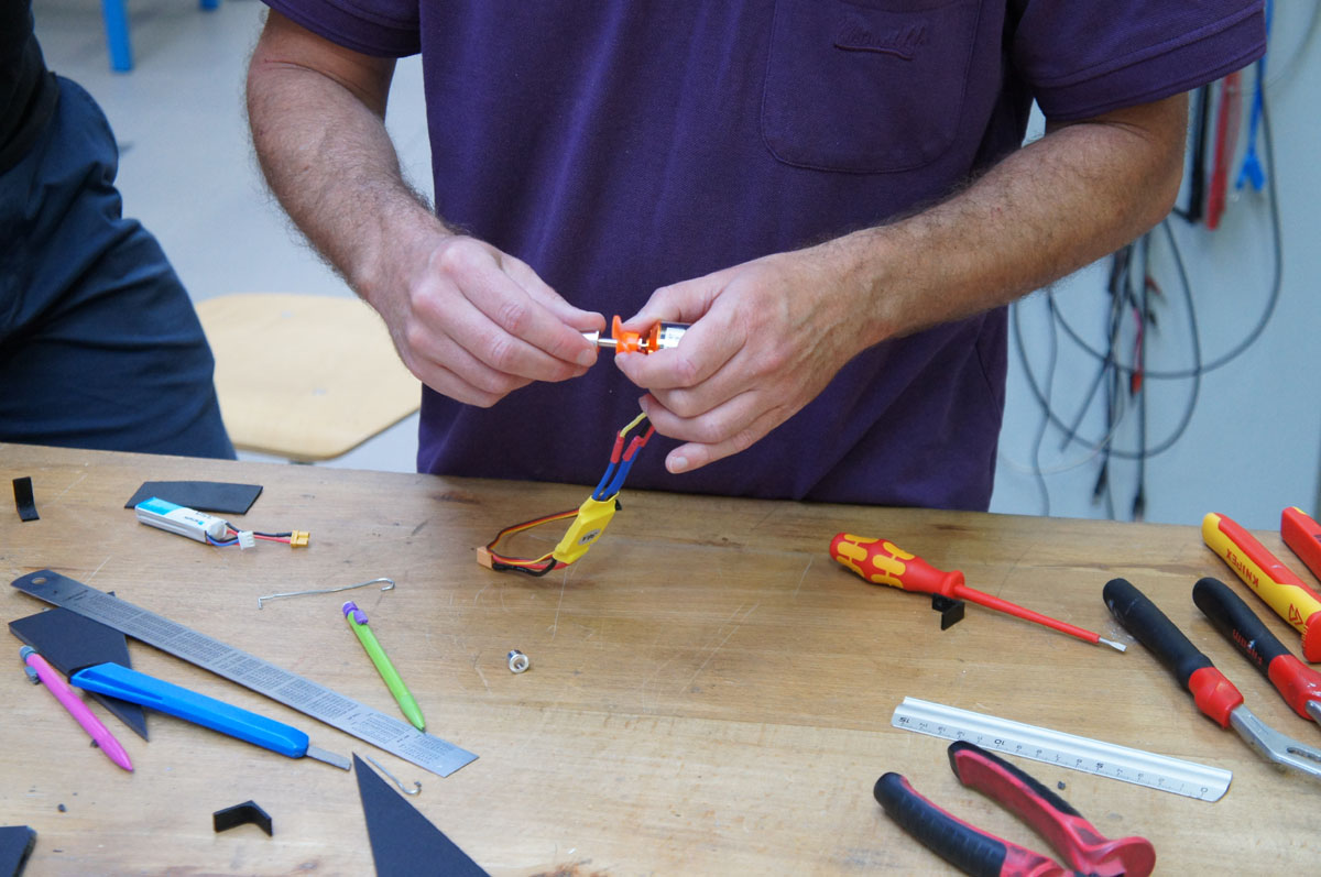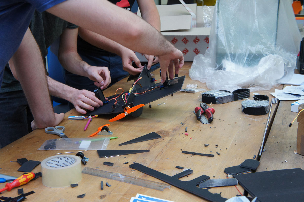 Le principe est simple : une compétition d’ingénierie, disputée en équipe de 2 à 4 participants. Cette année le thème, gardé secret jusqu’au dernier moment, était « Make it fly ! ». Les étudiants se sont donc affrontés pendant 5 heures, dans le but de concevoir un objet capable de voler. A leur disposition, un kit de matériel (moteurs, matériaux bruts, etc.) et les moyens de fabrication du MakerSpace (imprimante 3D, câblages, poste à souder, fraiseuses, perceuse, etc.). Ils ont également pu profiter de l’aide et des conseils des ingénieurs du Pôle Technique de Supméca.