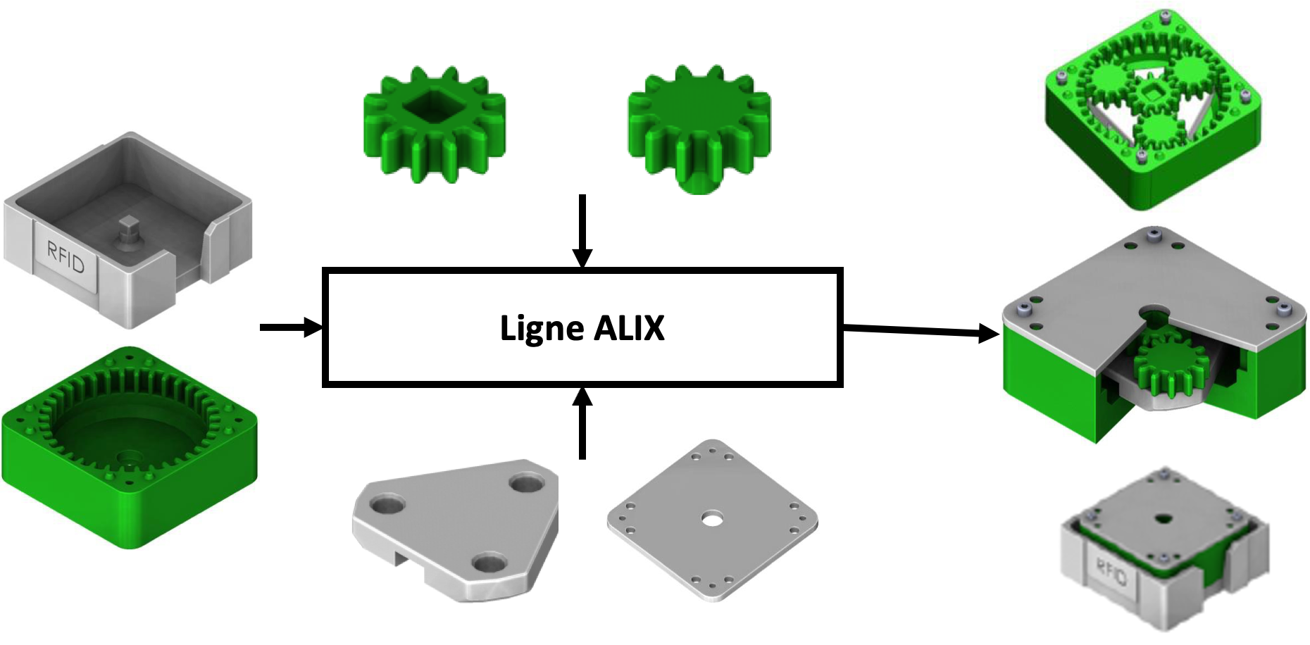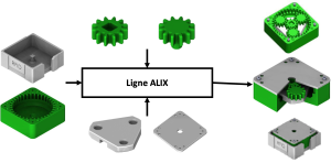 Dans ce mode de fonctionnement, la ligne sert à assembler des trains d’engrenages