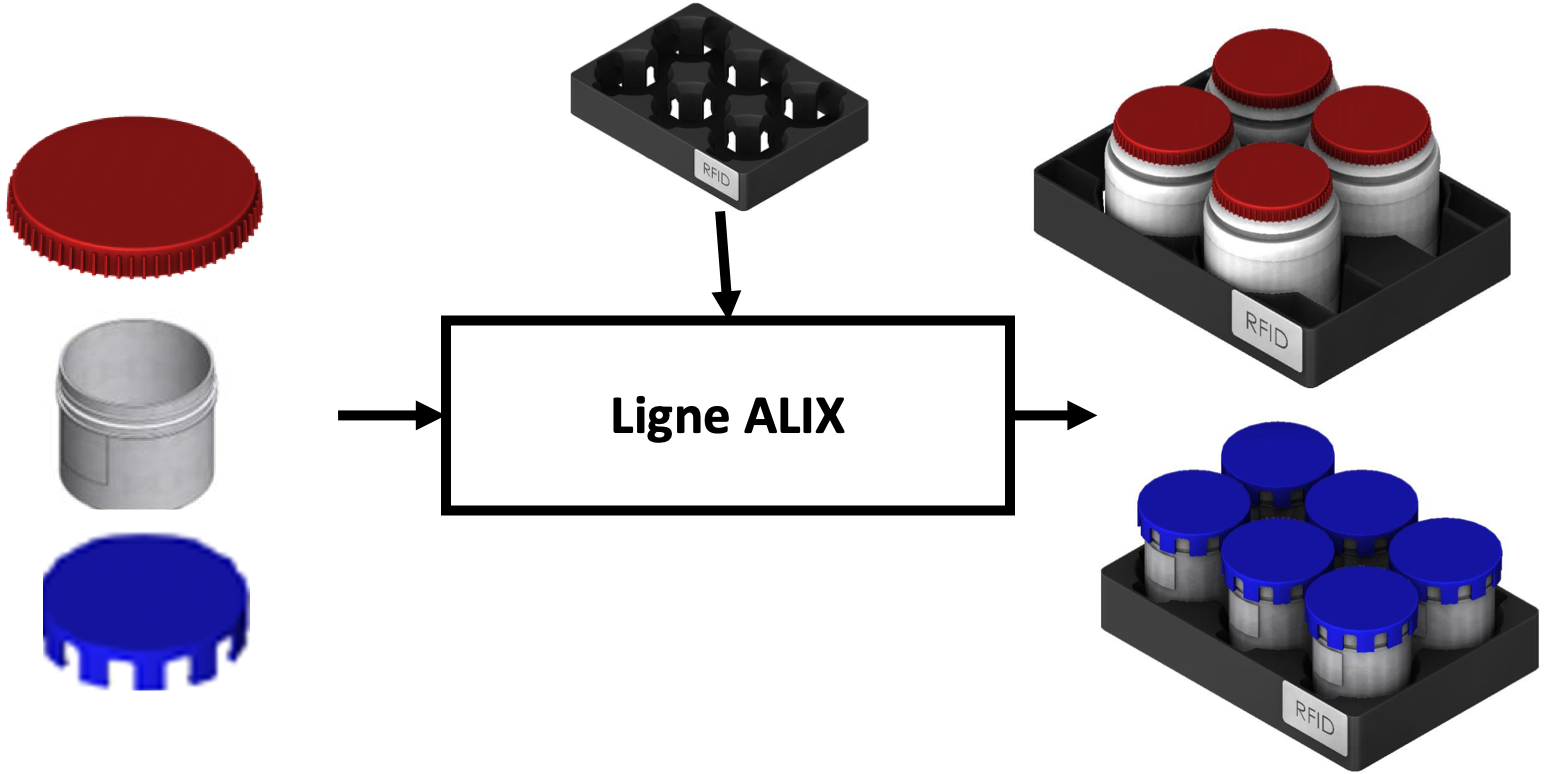 Dans ce mode de fonctionnement, la ligne sert à fermer et à conditionner des pots |